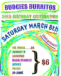 Come celebrate with Budgies Burritos for their 20th anniversary! For one day only they will be offering burritos at their 2005 prices.